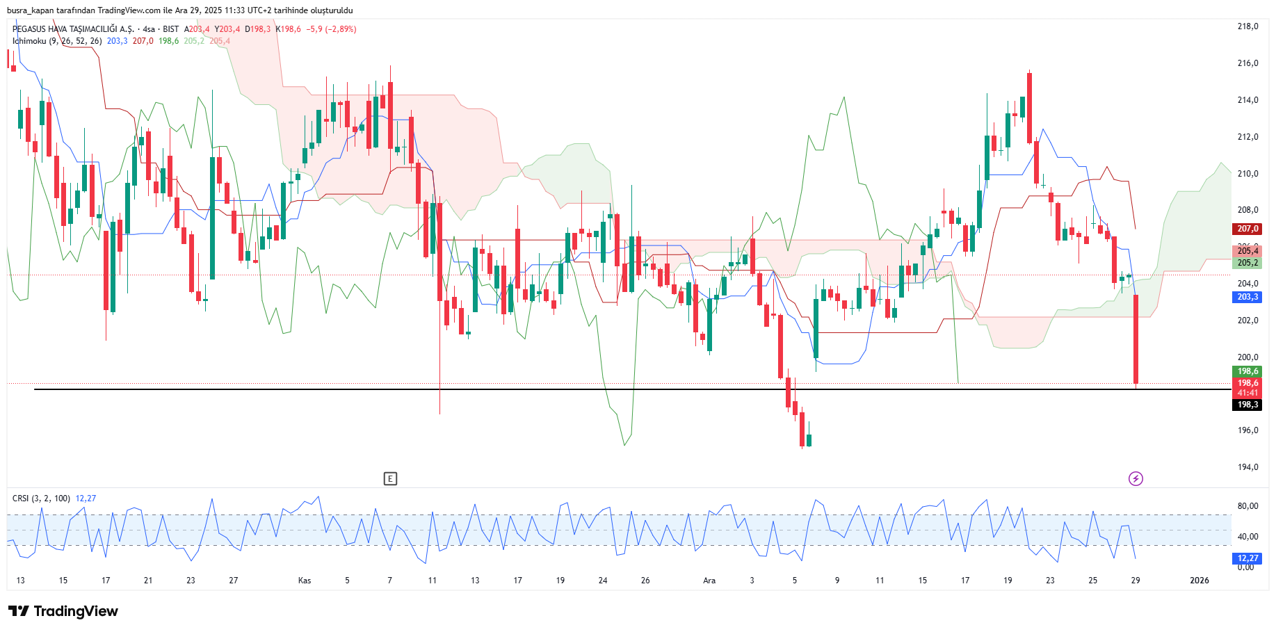 Pegasus hisseleri, gelen açıklamalar sonrasında yüzde 3’e yakın değer kaybetti. Dünü 204,5 seviyesinde kapatan Pegasus, 198,5 seviyesine kadar geriledi.